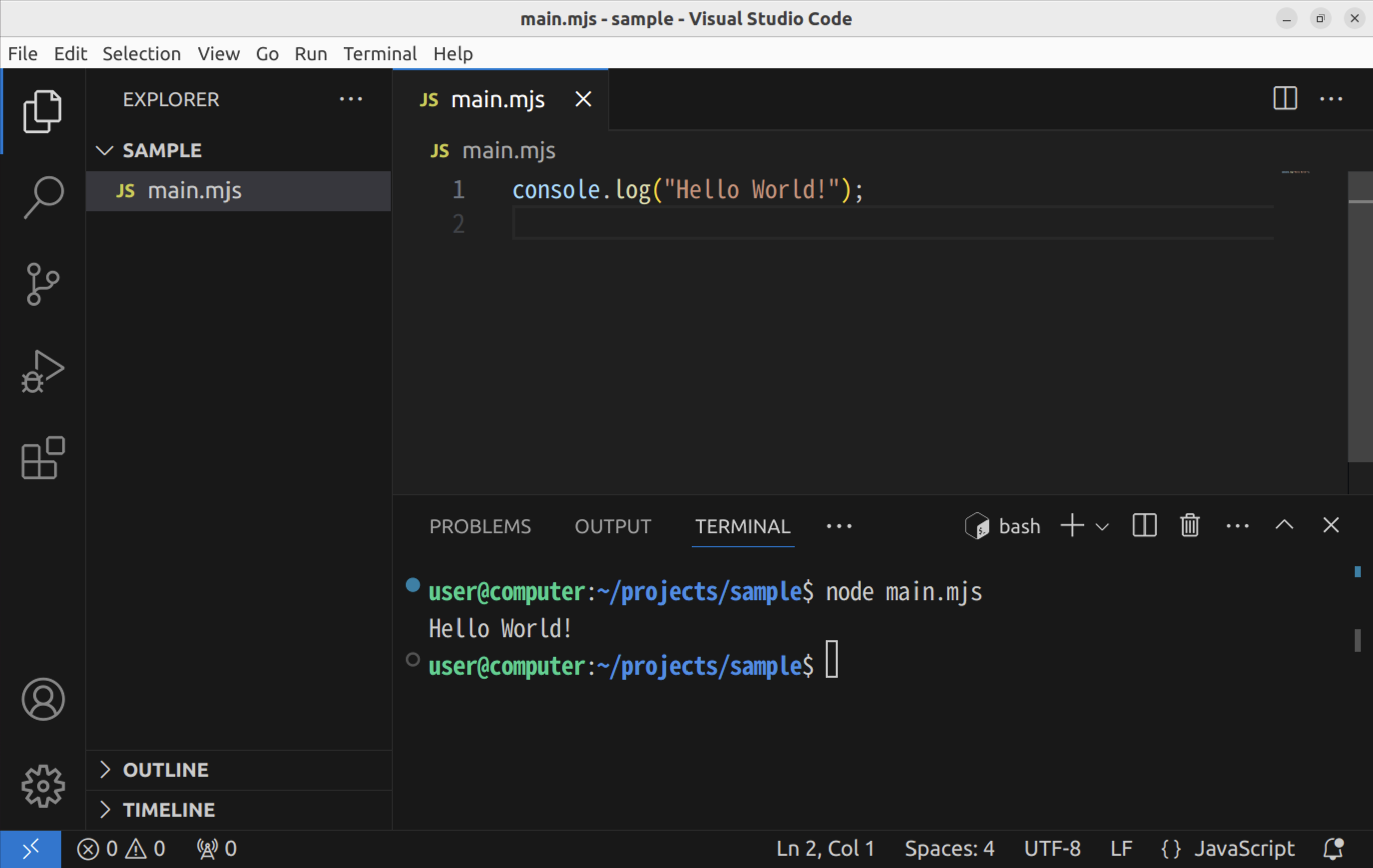 ファイルを作成し、下のスクリプトを保存します。拡張子が.mjs